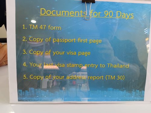 要提出書類(イミグレ90日レポート受付にて)